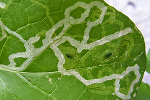 Minadores: El minador hembra atraviesa la hoja y deposita sus huevos en el interior de la planta.