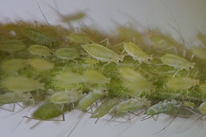 Se sitúan en el envés de las hojas y son más frecuentes en los meses de primavera y verano. Segregan una melaza azucarada que es aprovechada por las hormigas y estas a cambio le brindan protección a los pulgones.